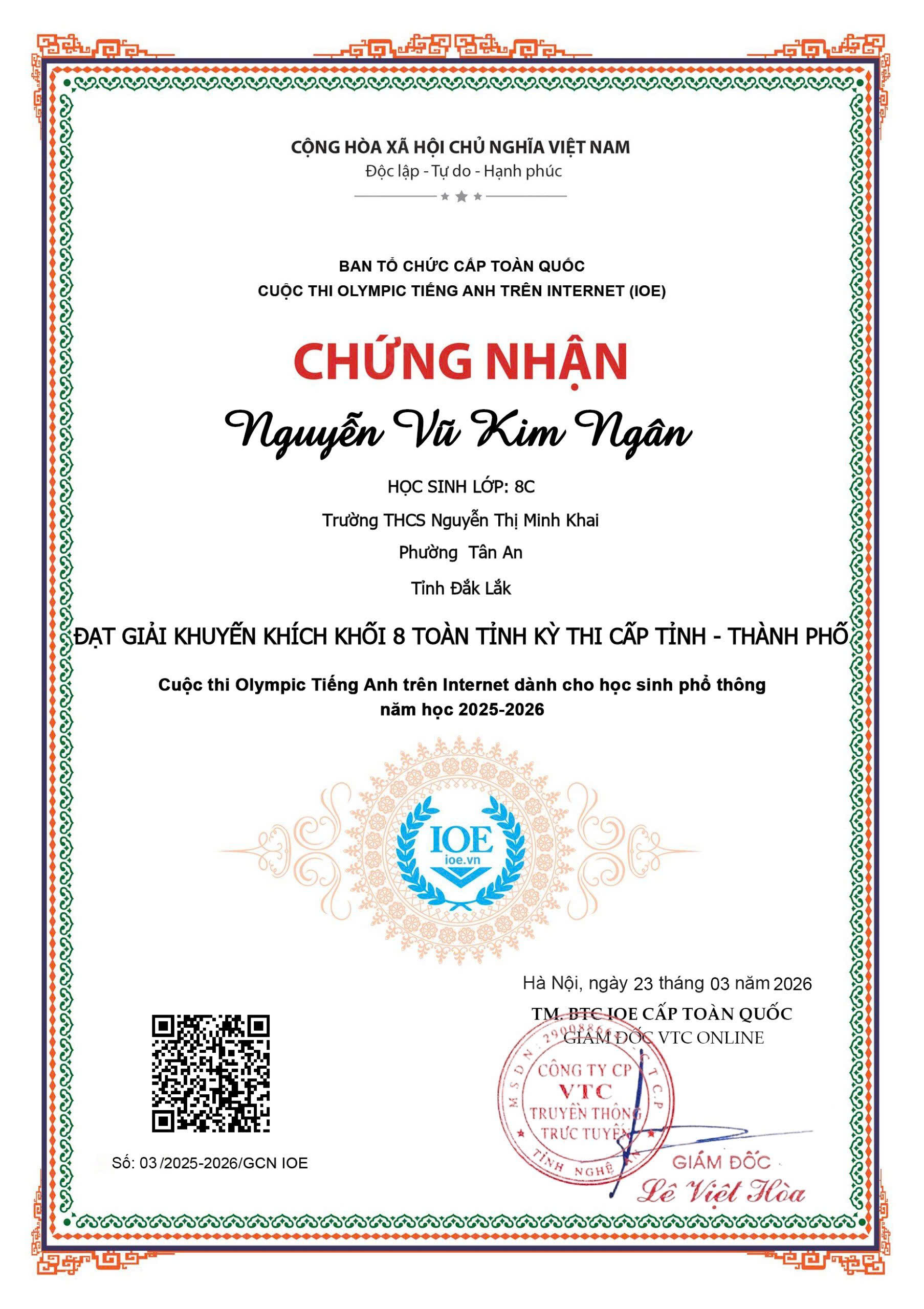 THÀNH TÍCH CUỘC THI IOE NĂM HỌC 2025-2026